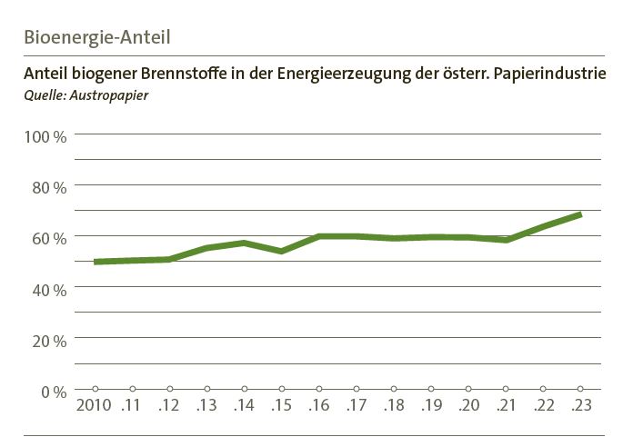 Grafik Bioenergie-Anteil der Papierindustrie in Österreich