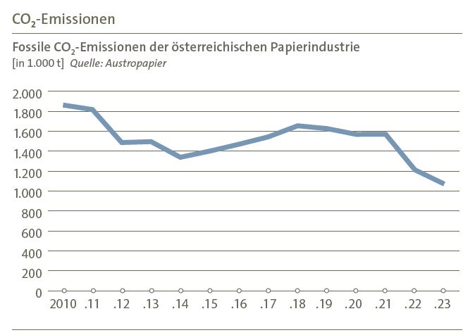 Grafik CO2-Emissionen der Papierindustrie in Österreich