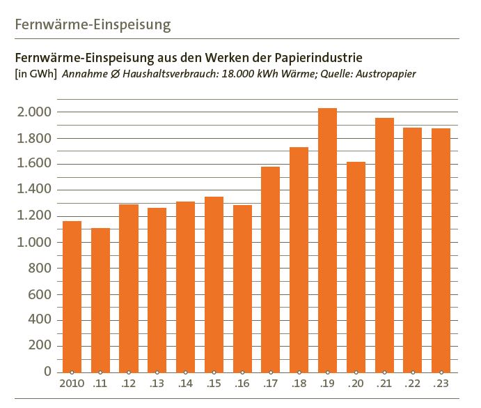 Grafik Fernwärme-Einspeisung der Papierindustrie in Österreich