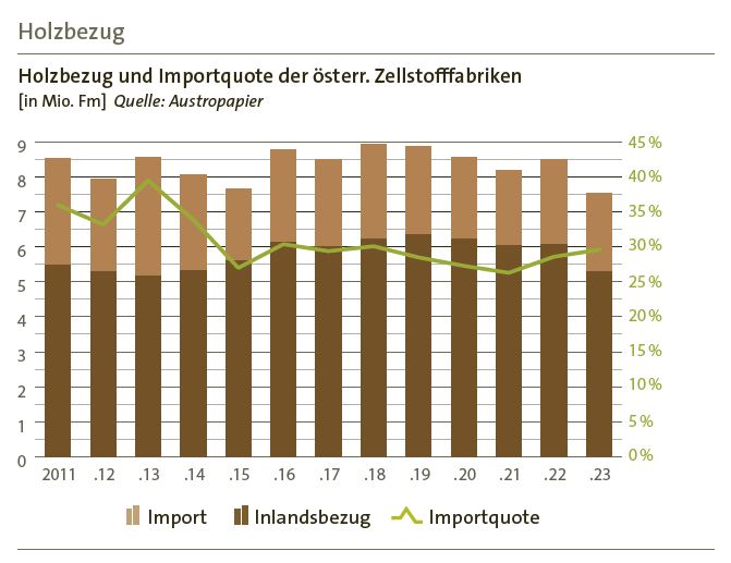 Grafik Holzbezug der Zellstoffindustrie in Österreich
